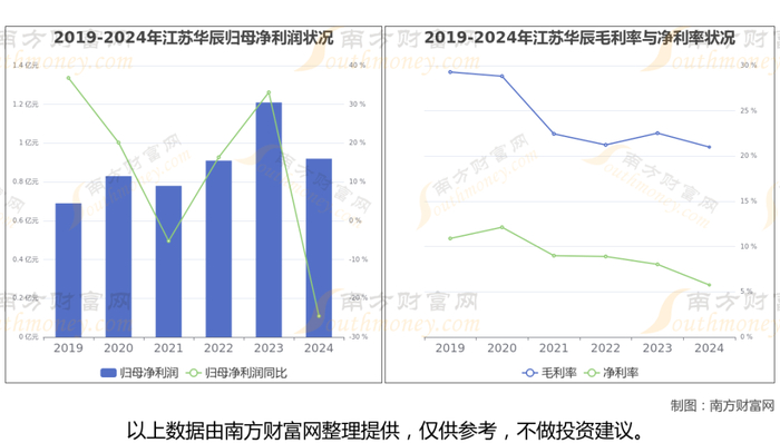 数据显示(如上图),江苏华辰公司2024年营业收入15.81亿,同比增长4.69%,近5年复合年增长率(CAGR)23.41%。