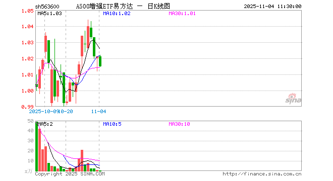 A500增强ETF易方达(563600)跌0.59%,半日成交额16.73万元