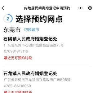 “东莞最近离不了婚吗?”近日,有网友发帖称,想在东莞办理离婚登记,但系统显示,多个婚姻登记处最近无可预约时段。该帖引发关注,已有上千条评论。