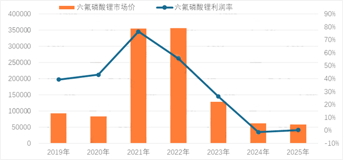 中国六氟磷酸锂价格及利润波动(元/t