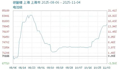 ▶▶碳酸锂根据相关数据统计,截至202510月份,中国碳酸锂市场价格已突破9万元/吨,主流价格在8万元/吨附近,9-10月份累积上涨66%碳酸锂价格上涨,是造成六氟磷酸锂价格上涨的主要原因之一。