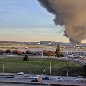 机场附近升起滚滚浓烟。目前紧急救援人员正在赶往现场。