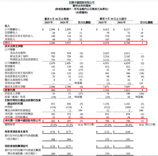 百胜中国三季度多项指标再创历史新高,但因投资影响净利润下滑。