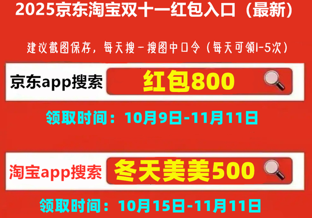 不少网友分享经验:用京东搜索“红包800”,或淘宝搜“冬天美美500”,中大额券的几率确实更高。