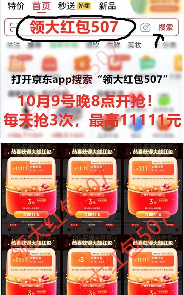 手机京东搜索:「领大红包507」,每天重复领3次最高11111元的双11红包!调好闹钟,记得保存收藏。