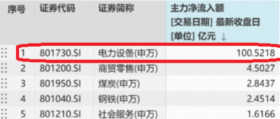 资金面上,创业板综指数第一大权重行业今日再度迎来主力资金青睐,电力设备行业获主力资金净流入100.52亿元,高居31个申万一级行业之首!