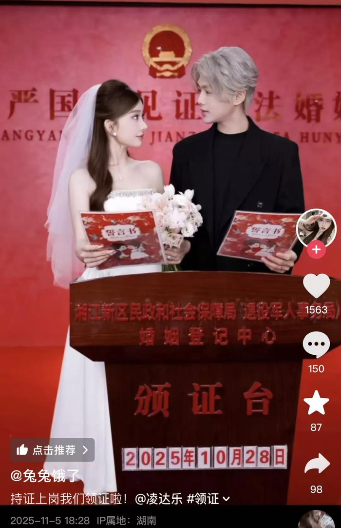 11月5日,网红鹿哈在社交平台晒出领结婚证视频,艾特女友并配文:“持证上岗啦,不是一时兴起,是深思熟虑的一辈子。”