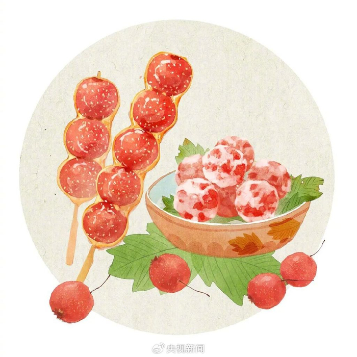 糖葫芦是秋冬时节,北方的传统小吃,有几千年的历史。酸甜的山楂,裹上麦芽糖浆,形成均匀的糖衣,这一口酸甜贯穿岁月。