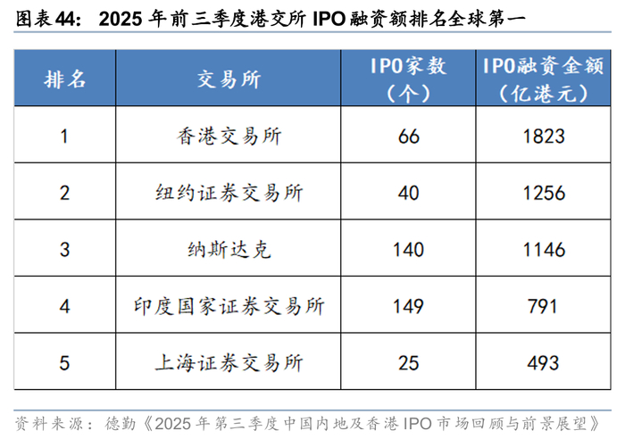 国际业务以香港为桥头堡,受益于香港资本市场制度优势和规模提升。在国际业务的扩张路径上,中资券商整体遵循“由近到远”、“由易到难”的路径,多将首站选在香港,通过设立香港子公司开展国际业务。香港市场拥有独特的制度优势,如IPO审核条件更包容、配售可采用“先旧后新”机制提高再融资效率、采取与国际发达市场相同的T+0交易机制等。且近年来,香港资本市场制度优势仍在不断加强,如2024年引入库存股机制,2025年推出“科企专线”,允许以保密形式递表等。在此背景下,香港市场成为优质资产上市的首选市场之一,2025年前三季度港交所IPO融资额排名全球第一(据德勤统计);香港市场规模持续扩大,Q3末港交所总市值排名全球第四(据彭博数据)。
