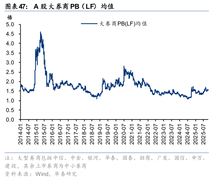 Q3末大券商总资产合计环比+11%。从驱动因素看,Q3权益市场交投活跃度持续提升,增量资金持续入市,同时券商普遍加大投资仓位,客户资金与金融投资共同驱动资产扩张。25Q3末10家大型券商客户资金和金融投资余额环比分别+9%、+7%。从杠杆率看,Q3末环比均有提升,广发、中金提升较快,分别较Q2末提升0.63x、0.59x,其中中金杠杆率达5.42x,为大券商中最高。