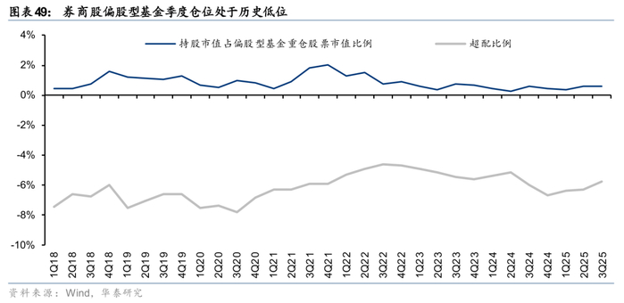 看好券商业绩成长性和高性价比的估值修复机会。25Q3末主动偏股基金券商股仓位仅0.62%,仍处历史低位。2018年来的行情中A股大型券商/中小券商PBLF均值约1.4x-2.0x/1.5x-2.3x,当前1.50x/1.71x;H股中资券商指数PBLF 0.86x,处于2016年以来69%分位。看好券商业绩成长性和高性价比的价值修复机遇,标的选择关注:1)港股估值更优、且流通盘更小;2)具备估值性价比的A股龙头;3)特色中型券商。