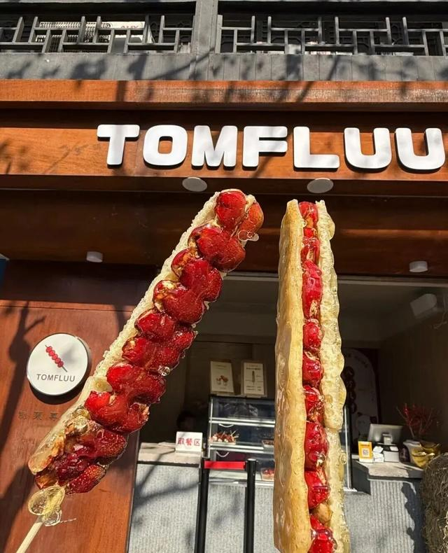 今年秋冬,奶皮子糖葫芦火成了“顶流”,它把奶皮子和山楂融合,再裹上一层脆糖壳,口感层次丰富,圈粉了大批年轻人。