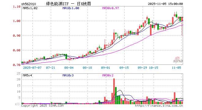 11月5日绿色能源ETF(562010)份额减少100.00万份,最新份额2329.87万份,最新规模2387.18万元
