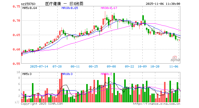 医疗健康ETF泰康(159760)涨0.00%,半日成交额64.79万元