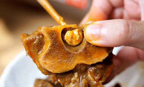 嫩嫩白白的骨髓条就滑到了舌尖上