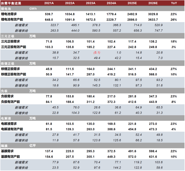 新能源车中游锂电板块经历2-3年下行周期,2025年以来伴随产业链价格逐步企稳、供需结构改善,底部反转趋势逐步显现,我们认为新一轮上行周期有望启动。本轮周期的核心驱动主要来自需求结构的变化、场景的多元化以及海外新一轮新车周期释放。具体而言: