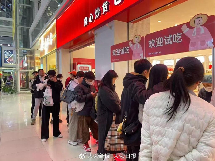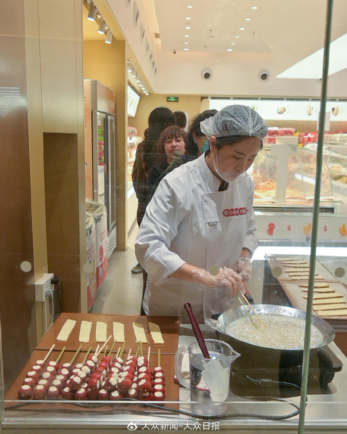 合肥的热度同样不减。之心城的冰老头糖葫芦摊前,下午就排起十几米长的队伍,有顾客为吃上一口要等1小时。“一周能卖五六千串”,老板梁小伟特意从老家调派五名员工支援,即便如此,从早上7点备货到晚上10点收摊,员工们仍忙得嗓子沙哑。社交平台上,合肥网友的“打卡帖”下,“哪里能买”的追问刷屏,不少店铺因奶皮子原料断货,只能让顾客苦苦等候。