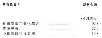 中伟新材是次IPO招股引入9名基石投资者,合共认购2.135亿美元(约16.59亿港元)的发售股份,基石投资者包括贵州新型工业化基金、宝达投资厦门国贸600755.SH)、中创新航(03931.HK)、东圣先行科技国泰君安掉期)、NR 1 SP(North Rock基金)、上海高毅(华泰掉期)、湖南兴湘新兴产业母基金、蓝思香港蓝思科技300433.SZ)、欣旺达财资(欣旺达300207.SZ)