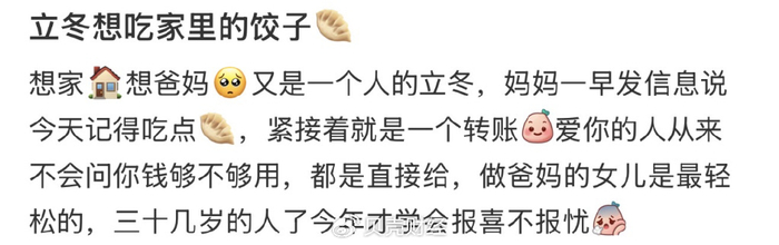 有网友说“立冬吃是迎冬”“冬至吃是纪念”。