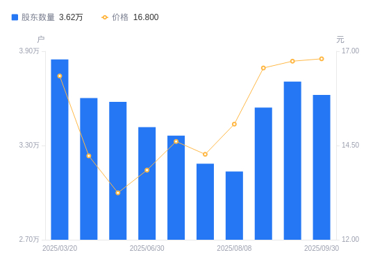 近一年(2024年10月31日至2025年10月20日),凯中精密A股股东户数从4.43万户,减低至3.69万户,降幅16.63%,区间股价上涨6.69%。