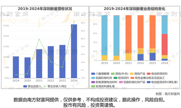 (如上图)2024年深圳新星公司营业总收入为25.63亿,同比增长62.32%,近5年复合增长率为26.98%。