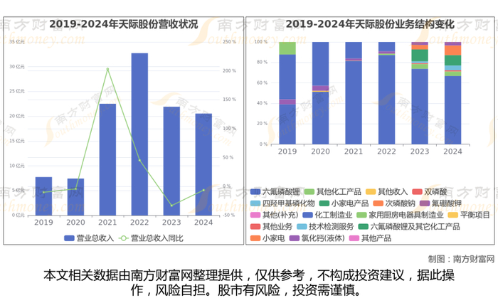 天际股份于2015年5月28日在深圳证券交易所上市,公司主营业务为主要研发、生产六氟磷酸锂及新型锂盐、添加剂产品,包括双氟代磺酰亚胺锂、二氟磷酸锂、草酸二氟硼酸锂、双草酸硼酸锂等及氟化盐系列产品。