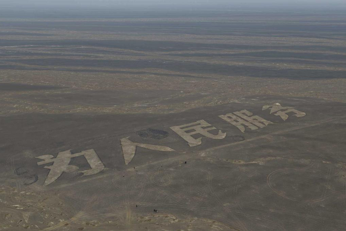 这5处巨幅飞行地标是中国人民解放军第八航空学校官兵于20世纪60年代在戈壁滩上刻画而成,用于飞行员训练时导航参照,对保障飞行安全起到了重要作用。今年9月,“为人民服务”飞行地标被人为破坏引发社会广泛关注。