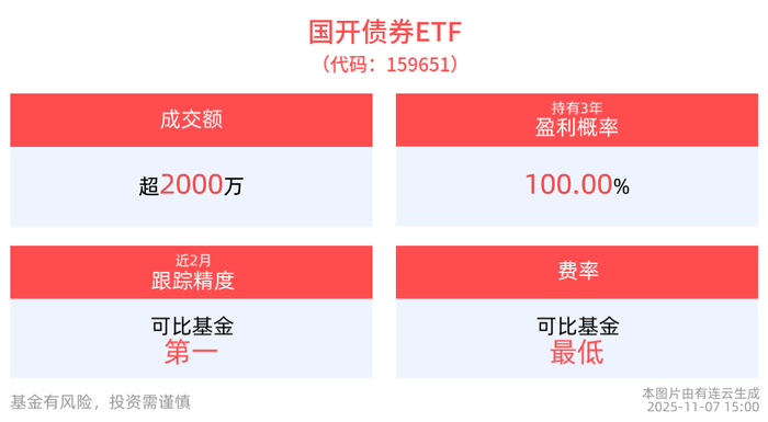 跟踪精度方面,截至2025年11月7日,国开债券ETF近2月跟踪误差为0.013%,在可比基金中跟踪精度最高。