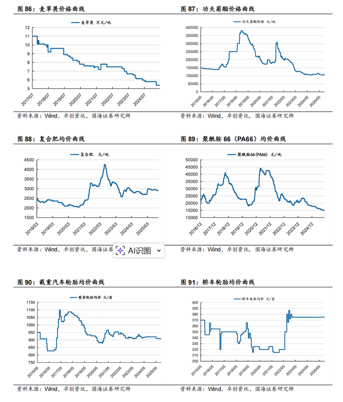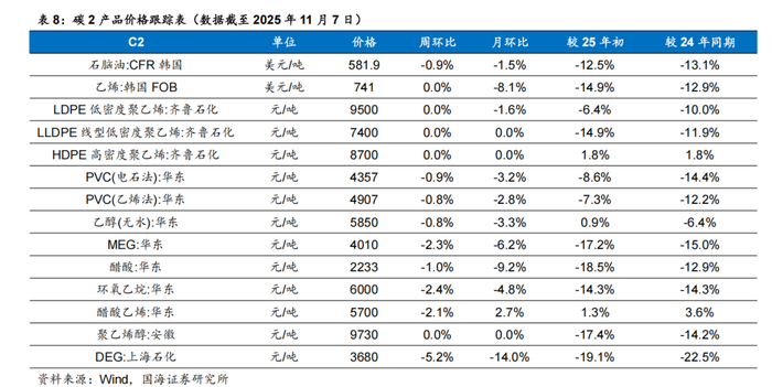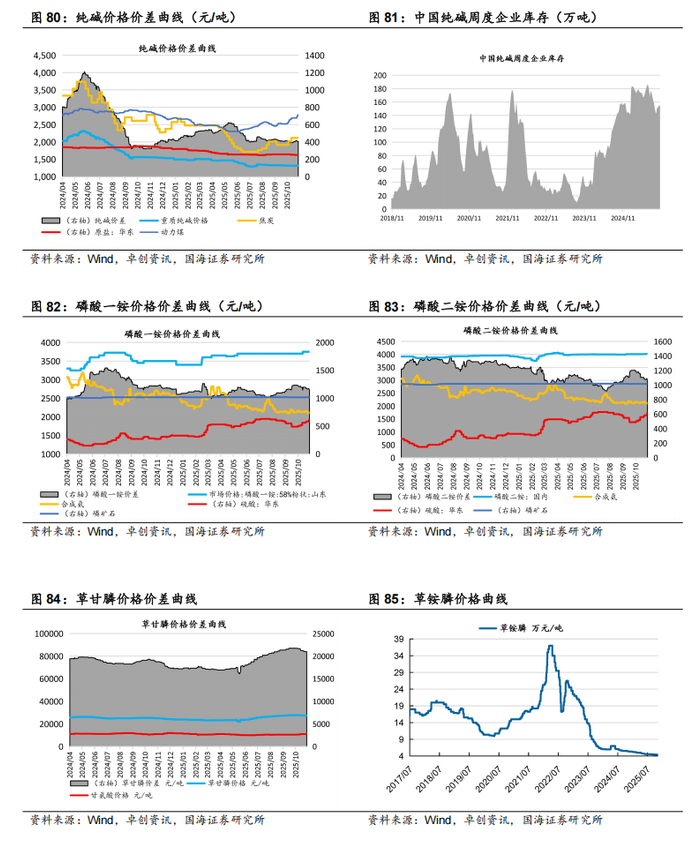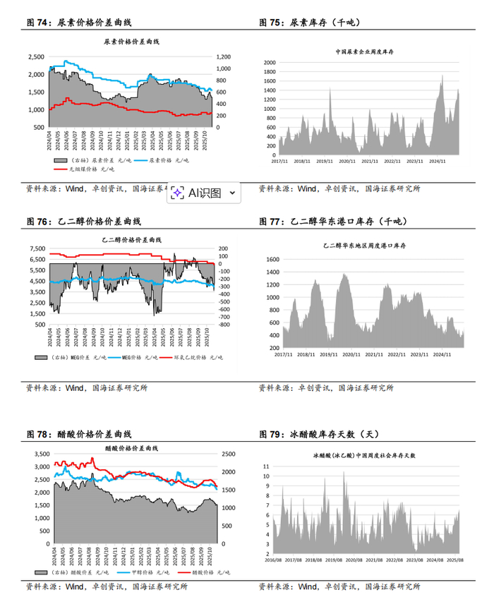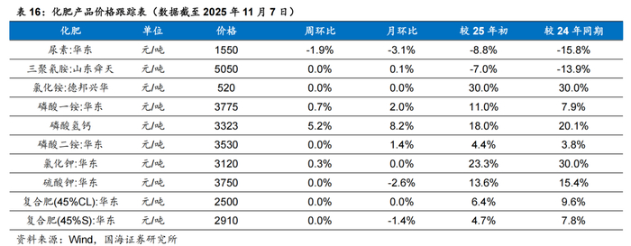 据百川盈孚,2025年11月7日乙二醇价格为4053元/吨,环比10月31日下降86元/吨。据卓创资讯,2025年11月7日尿素小颗粒价格为1550元/吨,环比10月31日下降30元/吨。