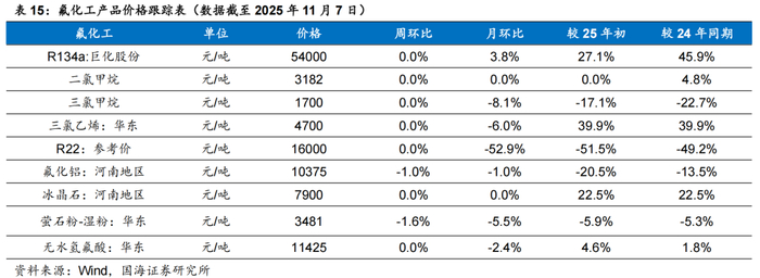 铬盐景气度持续兑现。据Wind,2025年11月7日,金属铬价格79060元/吨,环比10月31日上涨2020元/吨;据百川盈孚,11月7日,氧化铬绿市场价格较10月30日上涨4000元/吨。据铁合金在线,国内大厂10月以来多次发布涨价函。