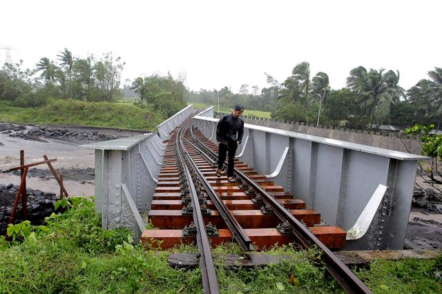 11月9日,菲律宾马尼拉,超强台风“凤凰”登陆后,一座铁路桥被毁。