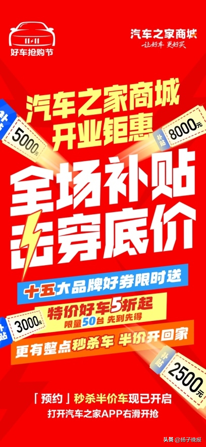 (2025年11月10日)汽车的双11来了!汽车之家商城开业后首个重磅大促“11.11好车抢购节”已正式启幕!没有复杂满减、没有隐形规则,核心记住“5+5+5”:半价5折秒杀车+5大福利+5个安心保障!50辆特价车5折开抢,整点秒杀半价车,15大品牌平台额外补贴最高8000元!划重点:参与入口——汽车之家右划进入商城开抢,手慢无!