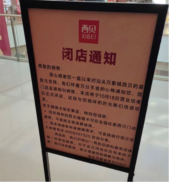 有汕头消费者表示:“汕头万象城店原本是西贝在汕头唯一的一家店。10月中旬,门店挂出闭店通知,10月18日就闭店了,前后不到一个星期。我们手里还在有效期内的优惠券要么作废,要么只能去汕头外的其他城市使用。”