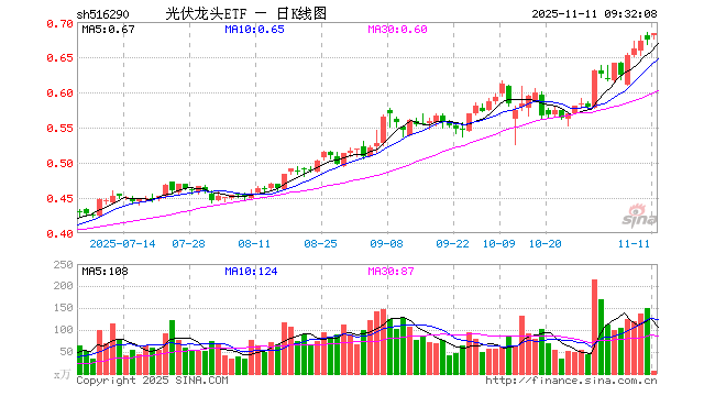 11月11日,光伏龙头ETF(516290)开盘涨0.89%,报0.680元。光伏龙头ETF(516290)重仓股方面,阳光电源开盘涨3.09%,隆基绿能涨0.00%,特变电工涨0.00%,TCL科技涨0.00%,通威股份跌0.96%,正泰电器涨0.06%,晶盛机电涨0.07%,TCL中环跌1.57%,德业股份涨1.68%,捷佳伟创涨2.84%。