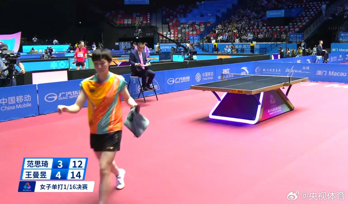 全运会乒乓球女单1/16决赛,王曼昱在先失一局的情况下,连扳三局,随后范思琦将比赛追至3平。