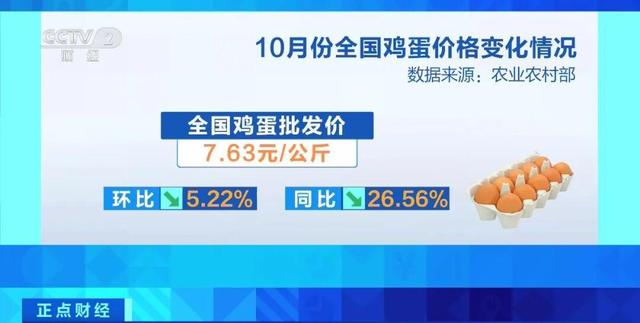 据农业农村部监测,10月份全国鸡蛋批发价为每公斤7.63元,环比下降5.22%,同比下降26.56%。