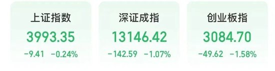 截至上午收盘,上证指数下跌0.24%,深证成指下跌1.07%,创业板指下跌1.58%。