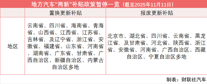 此前一日,北京市商务局发布《关于暂停2025年北京市汽车报废更新补贴政策的公告》。其中提到,根据《2025年北京市进一步推动汽车以旧换新实施方案》中“总额控制、先报先得、用完即止”原则,自11月11日0时起,北京市暂停实施汽车报废更新补贴政策。