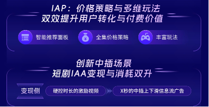 而IAA近期上线的中插能力效果同样非常出色,从之前用户需要硬控时长去刷激励广告的形式,变成了现在只需要几秒且在集与集之间上下滑信息流广告的形式,用户的广告接受度更高,同时也极大地降低了看剧的阻塞感。这一升级实现看广告人数和次数的显著提升,带动短剧IAA变现与消耗增长。