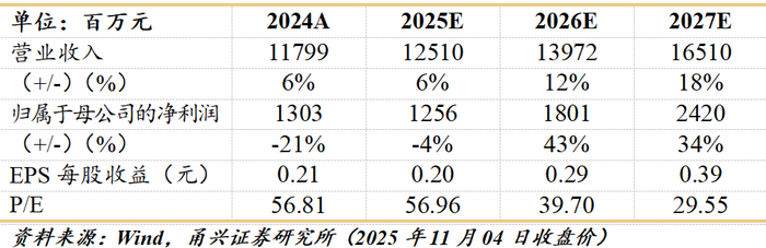 思摩尔作为电子雾化科技的龙头企业,凭借公司深厚的技术积淀、全球化产能优势与多元业务布局,未来伴随公司自有品牌在开放式产品领域市场份额的进一步提升与雾化医疗、雾化美容业务发展带来新的增长,尤其是公司与BAT合作推出的HNB系列产品,凭借差异化加热技术,终端用户反馈积极,依托BAT全球营销渠道资源与思摩尔技术优势,该业务线有望成为未来三年核心增长极,我们预计公司2025-2027年营业收入分别为125.10/139.72/165.10亿元,同比增速分别为6%/12%/18%;归母净利润分别为12.56/18.01/24.20亿元;EPS分别为0.20/0.29/0.39元,对应PE分别为60/40/30倍(对应2025年11月04日收盘价);首次覆盖,给予“买入”评级。