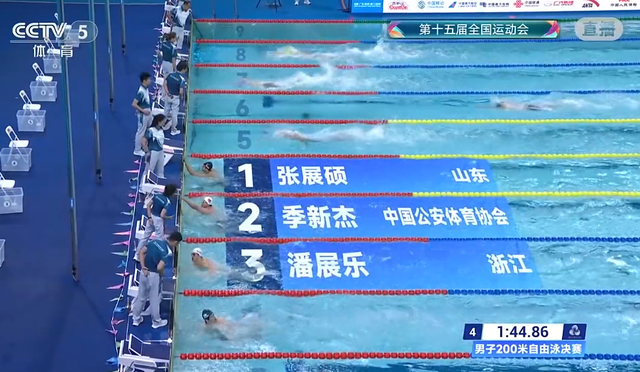 全运会男子200米自由泳:张展硕夺冠,潘展乐第三,孙杨由于犯规被取消比赛成绩