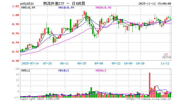 11月12日物流快递ETF(516530)份额减少50.00万份,最新份额9230.23万份,最新规模9166.54万元