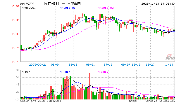 医疗器械ETF基金(159797)开盘跌0.24%,重仓股迈瑞医疗涨0.18%,联影医疗涨0.08%