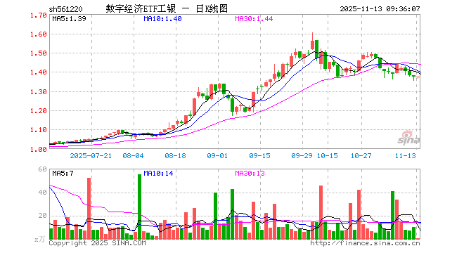数字经济ETF工银(561220)开盘跌0.15%,重仓股中芯国际跌0.53%,海光信息跌0.04%