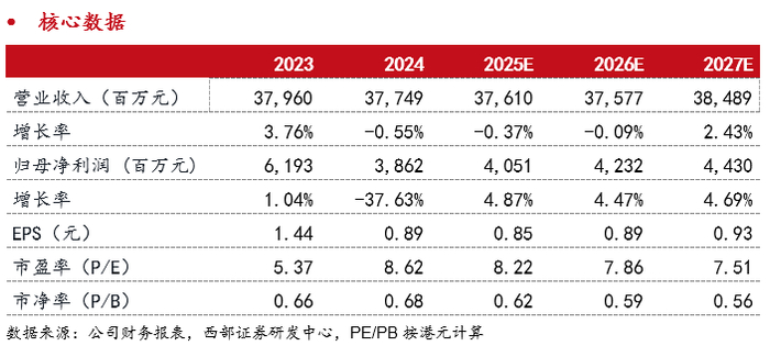 我们预计远东宏信2025-2027年营业总收入分别为376.10亿元、375.77亿元、384.89亿元,同比-0.37%/-0.09%/+2.43%;归母净利润分别为40.51亿元、42.32亿元、44.30亿元,同比+4.87% / +4.47% /+4.69%,对应EPS分别为0.85、0.89、0.93元,BPS分别为11.22、11.79、12.41元,对应ROE水平分别为7.55%、7.51%、7.47%。