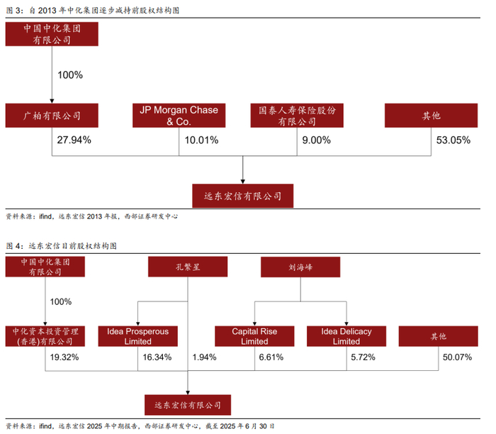 “中化系”作为国有资本代表,奠定股权稳定基石。远东宏信早期发展依托中国中化集团有限公司的强力控股。1991年,公司前身远东国际租赁有限公司成立,中化集团即作为主要发起方参与设立。2000年,通过一系列重组,中国中化集团全资控股了远东租赁,形成稳固的国有控股架构。在该阶段,中化集团作为绝对控股股东,为公司提供强有力的政策支持、产业资源与信用背书,助力其在融资租赁等基础产业领域快速拓展业务、夯实发展根基,国有控股结构有效保障了公司战略的稳健推进与运营连续性。