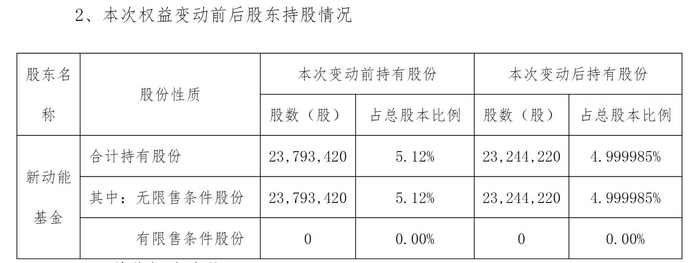此次减持完成后,无锡新动能基金的持股比例正式跌破5%。