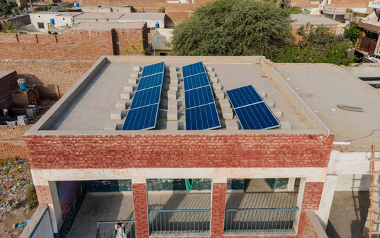 巴基斯坦屋顶上的太阳能电池板。(亚洲开发银行)