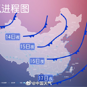 11月15日起,中东部大部地区将出现降温,部分地区降温可超12℃。17日至18日,南北方将迎来本次降温过程的气温低点,最高气温20℃线将退至华南沿海,最低气温0℃线将南压至江淮一带。