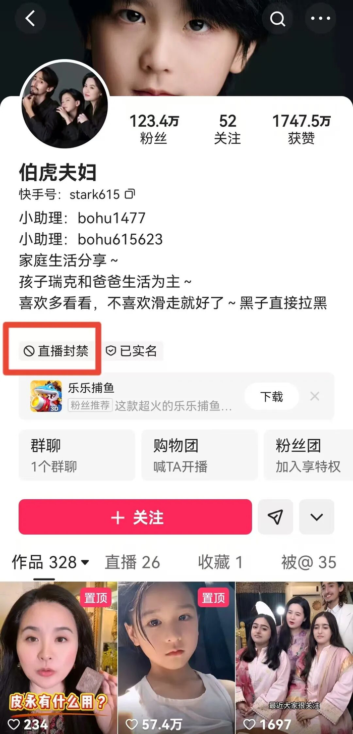 最近,快手百万网红“伯虎夫妇”因虚假宣传,被平台封禁直播功能。
